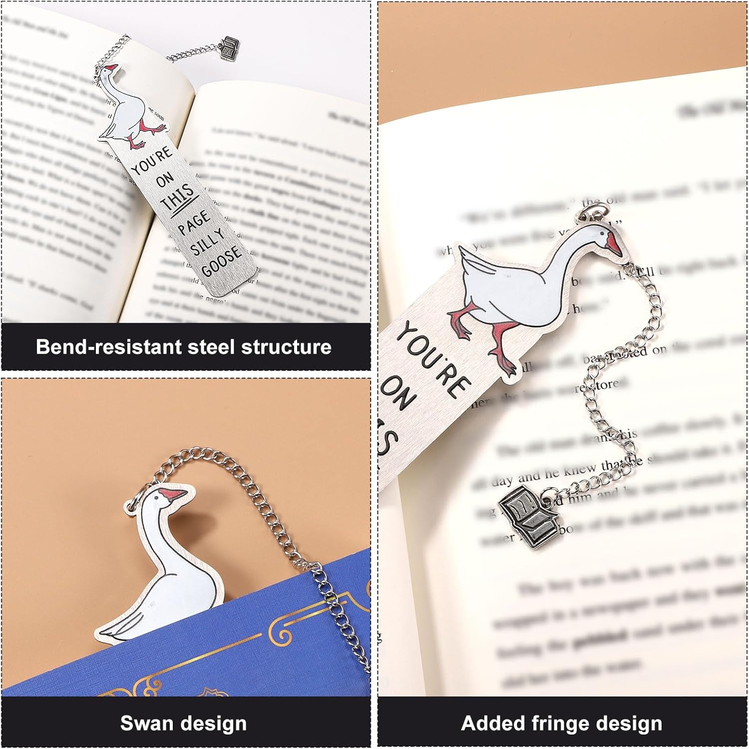 Special Design: The bookmark features a cute silly goose pattern with a decorative tassel chain, while the simple black text is more elegant, combining charm and artistry.