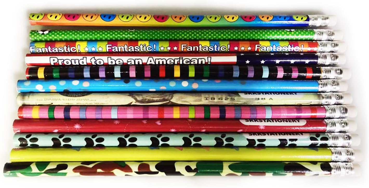 SKKSTATIONERY Assorted Colorful Pencils, Wooden Pencil with Eraser, Pencil Assortment, Novelty Kids Pencils,Awards & Incentives Pencils, 2 HB, 12 Assorted Colors 144/box.