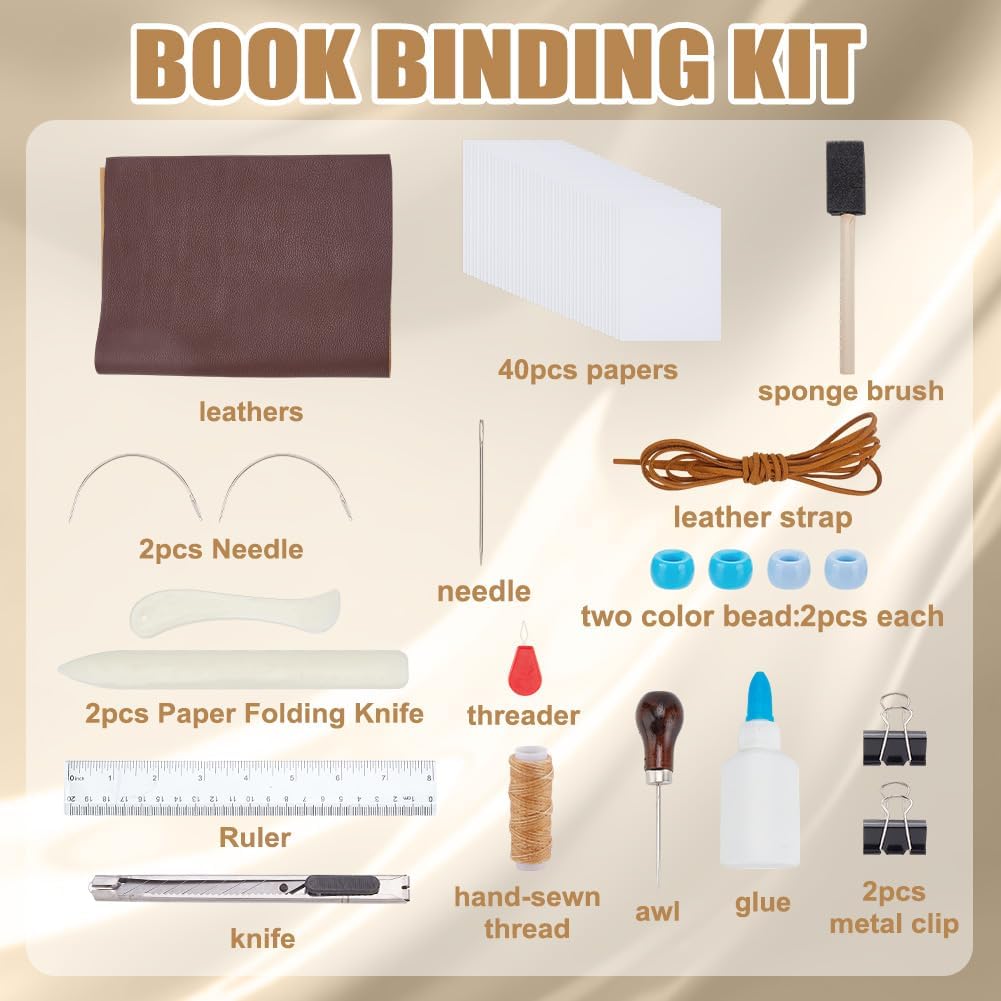 Bookbinding starter tools kit: The kit includes everything you need for DIY binding,including covers,inside blank paper,binder clips,binding glue,thread,needles and more.No need to buy other tools to get started